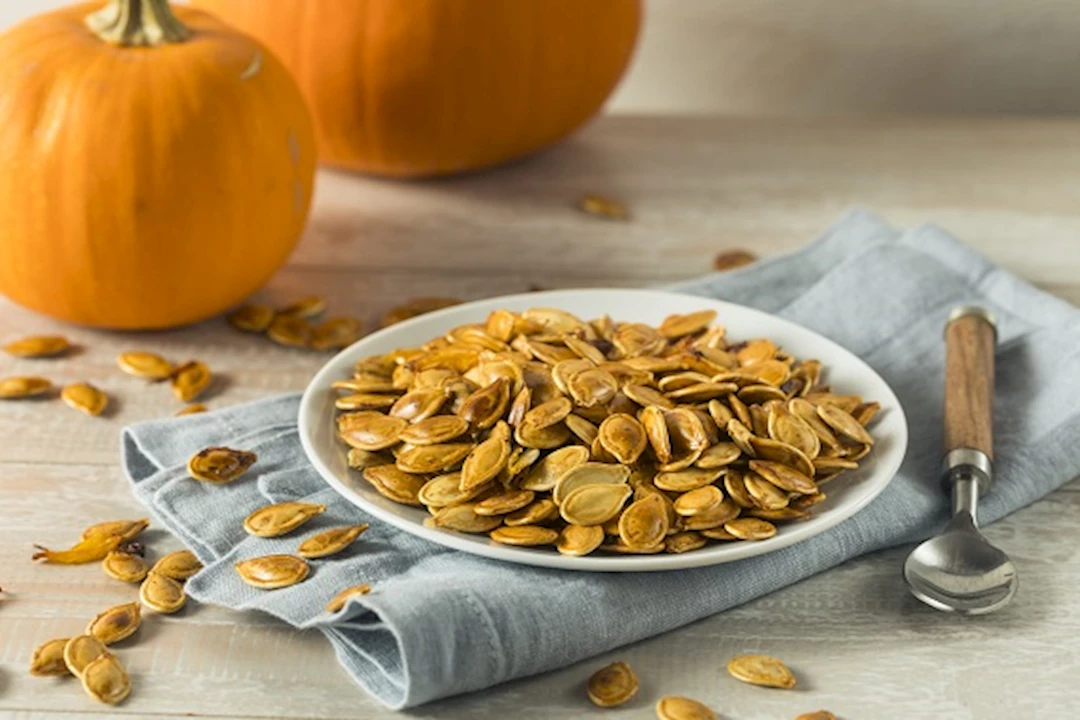 بذور اليقطين، كنز غذائي من الفوائد، فهي غنية بـالمغنيسيوم والزنك والحديد والبروتين والدهون الصحية، ما يجعلها إضافة قيمة لنظامك الغذائي.
